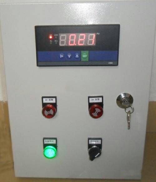 帶有智能型數碼顯示,可實時顯示并控制現場的液位。當水箱(池)液位降至設定下限水位值時,智能液位監測儀輸出指令,指示泵閥開啟送水,當液位達到設定上限值時,智能液位監測儀輸出指令,指示泵閥關閉,停止送水。同理,如有需要,智能液位監測儀也可以指示水泵或電動閥門作相反的運行動作。當水箱(池)液位超高于設定上上限值時,智能液位監測儀輸出指令并報警(可選聲光報警、電鈴報警等)。